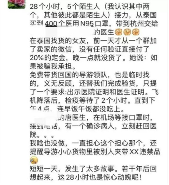 自此,一场长达100个小时掘地三尺式横跨全球的找寻医用防护资源接力战正式打响。