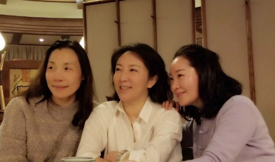 本文作者和两个同月同日生的小师妹 卓群(右一)