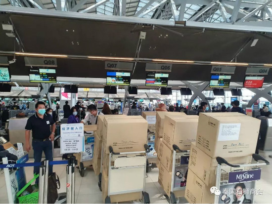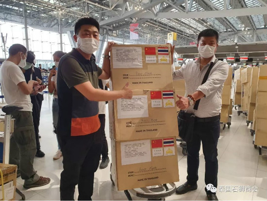 为助力祖国抗击新型冠状病毒感染的肺炎疫情,泰国石狮同乡总会暨泰国石狮商会联合泰中友好基金会、世界福建青年联合总会向福建省红十字会捐赠的60.4万只口罩和116个体温计,于2月2日下午从泰国曼谷运抵福建厦门。