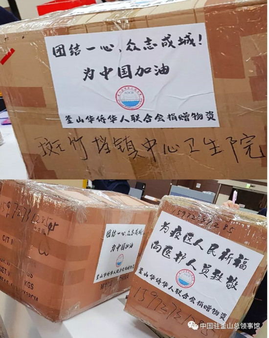 在此,中国驻釜山总领馆谨向领区侨胞们表示衷心感谢!拳拳赤子心,款款故乡情。侨胞们的善举充分体现了心系桑梓、血浓于水的赤子情怀,展现了海内外中华儿女同舟共济、众志成城抗击疫情的坚定信心。