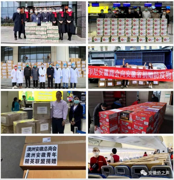 连日来,安徽省侨联各支部在会党组的坚强领导下,积极发挥战斗堡垒作用,每一名党员立足工作岗位,广泛动员海内外侨胞,引导海内外华侨华人、侨团侨社、归侨侨眷、侨资侨属企业等发扬“一方有难、八方支援”的大爱精神,积极捐款捐物。截至2020年2月5日12:00,安徽省侨联共收到来自老挝中华总商会、澳大利亚安徽总商会、安徽省侨商联合会、安徽省侨商投资企业协会、新加坡安徽商会、日本安徽联谊会、菲律宾安徽商会、新泽西州北美小芳黄梅艺术团、柬埔寨安徽商会、越南中国商会安徽企业联合会、安哥拉安徽商会、欧普康视合肥有限公司等60多个侨团、侨企,以及澳大利亚侨胞陈巍、乌干达侨胞胡记者等近百位侨界个人捐款共计300余万元,口罩、医用手套等价值60余万元的防护用品。
