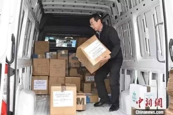 ▲当地时间1月29日,华盛顿华人华侨组成的志愿者组织正在将募集到的医用物资装车(中新社记者 沙晗汀 摄)