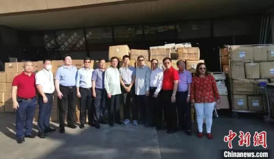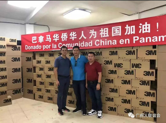 ▲祖籍清远的巴拿马华商总会会长黄伟文捐赠10万个口罩