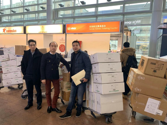 2月1日,欧洲华侨华人青年联合总会、比利时青田同乡会、比利时华人青年联合会、比利时国际中餐业联合会、欧洲华商扶贫基金会、比利时华商丝路商会、比利时西藏文化协会、比利时中国和平统一促进会共8个侨团联合捐赠的抗疫物资,通过海航布鲁塞尔直飞北京航班,发往浙江省青田、温州、瑞安、文成、丽水、宁波等地,这批物资包括73000个医用口罩和10000双医用手套。这是八家侨团捐赠物资中的第一批物资。