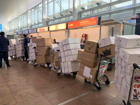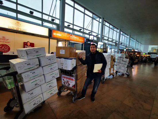吴晓旺会长和七家侨团的会长一起,积极联系海南航空,拜托海航机组帮忙在北京机场取出物资,找北京的朋友帮忙快递到浙江。