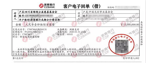 (捐赠1500万元现金回单)