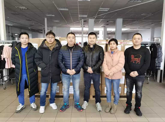 波兰青田同乡会会长邱琼(左三)组织筹集捐赠物资