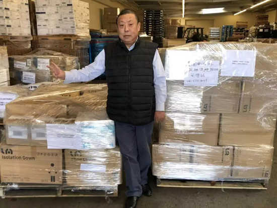 美国南加州“反独促统”论坛总召集人周德昭向四川大学华西医院捐赠的价值3万余元人民币的口罩、防护服、防护帽、防护鞋套、防护手套和护目镜等医疗物品于2月5日晚从美国洛杉矶运出。