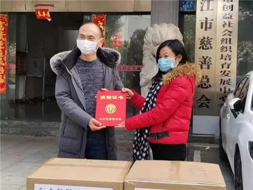 萍乡市侨联兼职副主席、昌盛大药房有限公司董事长刘芦萍紧急调动全国供应资源,采购到2万只口罩,带领昌盛志愿者为医务、城管、公安、环卫工人等各岗位防控一线工作者捐赠了医用防护(N95)口罩、维安喜保湿柔纸巾、医用酒精等物资,并温馨提示预防要点。