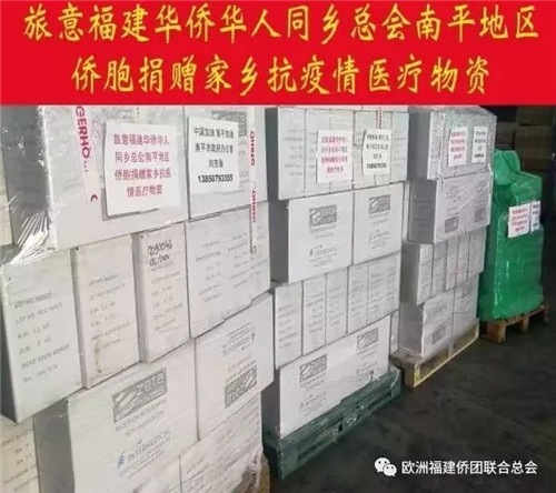 疫情无情人有情,一方有难,八方支援,同心同德抗击疫情,共渡难关。欧洲福建侨团联合总会的各个侨团,积极响应福建省委,省政府的号召,迅速组织会员成立购买防护疫情物资工作小组,克服一切困难,集中采购消毒液和口罩等防疫用品、物资,并在采购后联系航空公司将物资运回国内,在祖国和家乡最需要的时候,奉献侨界的爱心和力量。