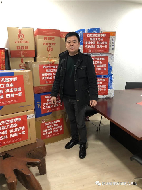 西班牙加泰罗尼亚福建工商会在会长林涵、荣誉会长陈孝乐的带领下,组织会员购买物资援助国内。
