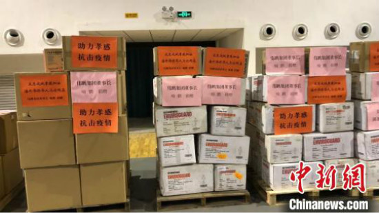 一批批来自海外侨领喻鹏捐赠的医护防疫物资,近日陆续送达湖北孝感市慈善总会。这些物资包括:医用口罩30万只、防护服1万套、消毒液2000箱,累计价值达400余万元(人民币,下同),工作人员已将这些物资分发至孝感抗疫一线。