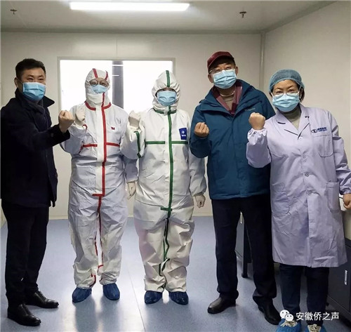 费主席代表合肥市侨联感谢专家和医务工作者为合肥市新冠肺炎疫情防控所做出的贡献。当得知检验人员防护服紧缺,直接影响到检验工作和检验人员健康时,费广华一行现场协调解决困难,使在场的专家和医务工作者深受感动。