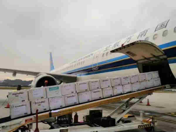 2月2日,物资通过民航客机托运,越过重洋,抵达广州,定向捐赠给兄弟二人研究生期间就读的医院——中山大学附属第一医院和中山大学孙逸仙纪念医院。