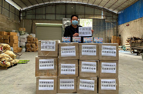 武冈籍侨胞王国雄与他采购的防疫物资