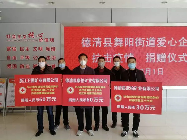 侨企浙江卫国矿业有限公司,通过德清县红十字会向武康健康保健集团捐款60万元,用于购买防疫物资提供给一线医护人员作用。