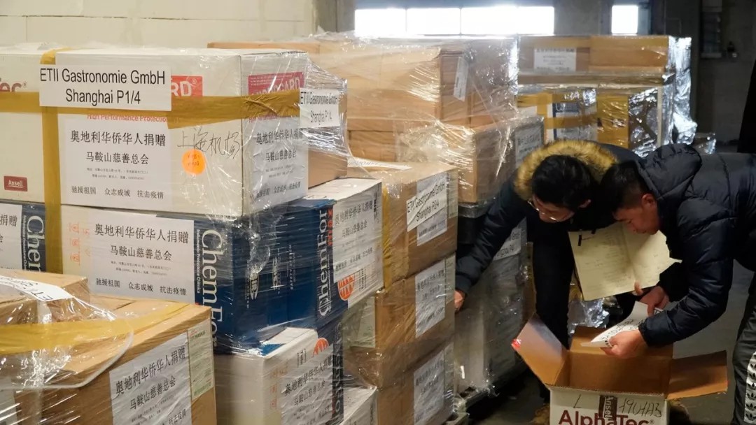 据不完全统计,截至发稿时奥地利侨界联合捐赠善款已达45万欧元,此次捐助给疫区一线医用物品共计医用口罩78000只,FFP2/FFP3口罩27000只,隔离防护服4663套。本次捐赠去向是安徽、浙江温州及丽水。由于湖北捐赠通道困难,原武汉捐赠计划搁浅,下次重点分配。上述物品(30个托盘共计20吨货物)将于明天(2月11日)通过中国国际航空公司CA842航班启程运送到祖国最需要的地方。这是目前从奥地利发回中国国内最大的一宗捐助物资,奥地利侨界表示接下来大家还会有后续行动。