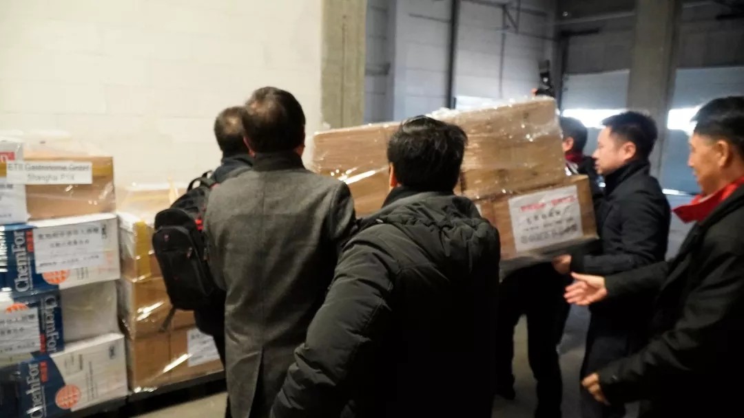 通过各方打听,郑成义得知有一批中资企业采购的20万普通外科口罩存放在捷克某仓库中,他立刻联系该中资企业,不出所料,对方不同意将口罩卖给郑成义。“我们是来寻求紧急援助的,你现在放在这里也运不出去,我们现在拿到以后可以马上运回国内,你现在先分我十万只口罩,之后我会再筹措十万只口罩还给你的。我也是支援中国,你也是支援中国,但我们这里飞机舱位都已经预订好了,一到货可以马上运回国!”就这样,对方同意出让十万只口罩,郑成义亲自押着第三辆大车晚上九点多从布拉格往维也纳赶,抵达奥地利时已是深夜一点。之后的装箱、打包、贴单……郑成义始终亲力亲为,“每天都是七八点就开始起床干活,不到天黑歇不了,比我开酒店辛苦多了!”
