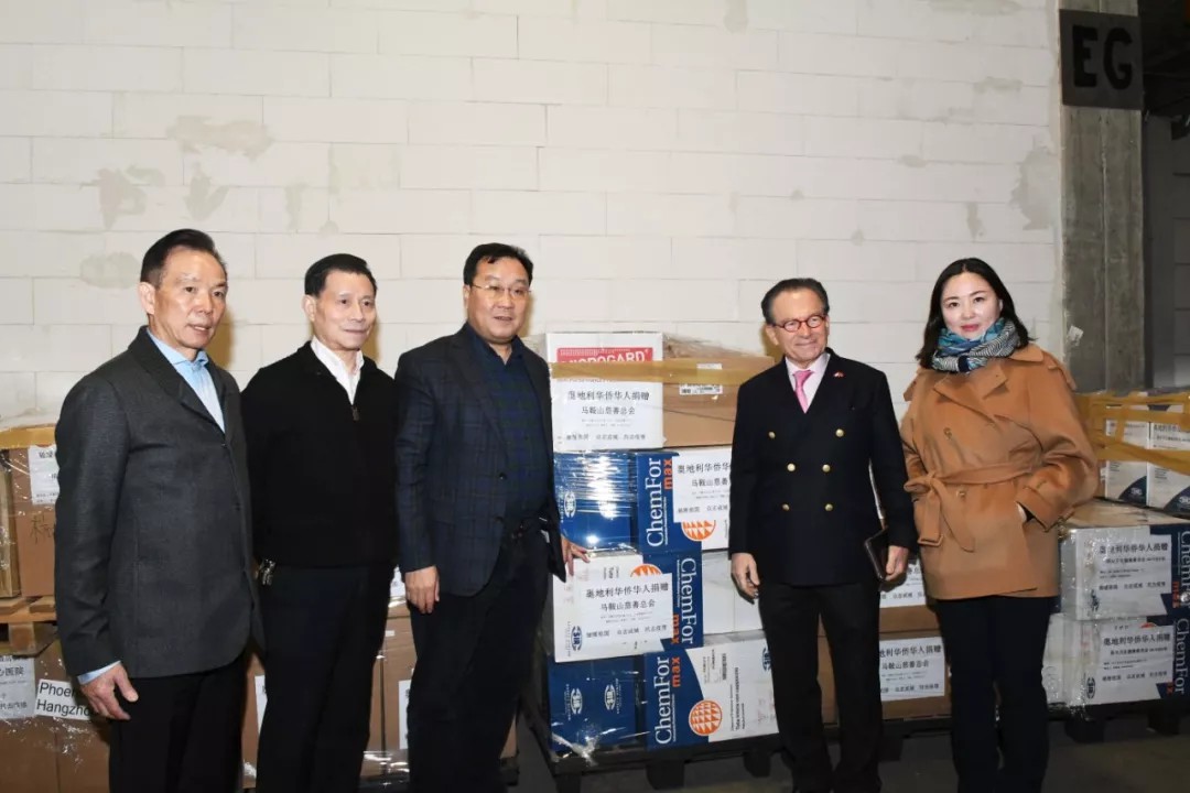 倡议发出后,奥地利中国侨联海外委员、奥地利华人总会名誉会长陈安申博士(上图左三)身先士卒,带头捐款2万欧元,还积极带动太阳升集团五百位员工参与到捐款中来,希望用自己的行动以身作则,积极动员奥地利侨界大家庭、普通的华侨华人民众都能参与进来,为打赢防控疫情的战役贡献力量。