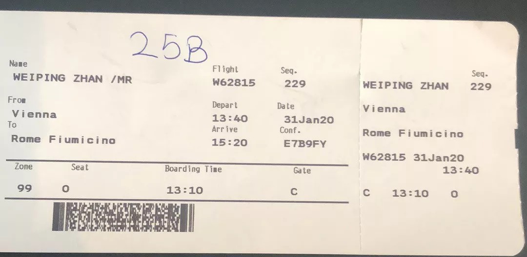 由于疫情发生突然,詹伟平飞往意大利的航班座位都是临时加出来的
