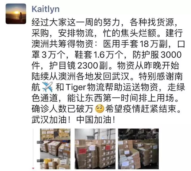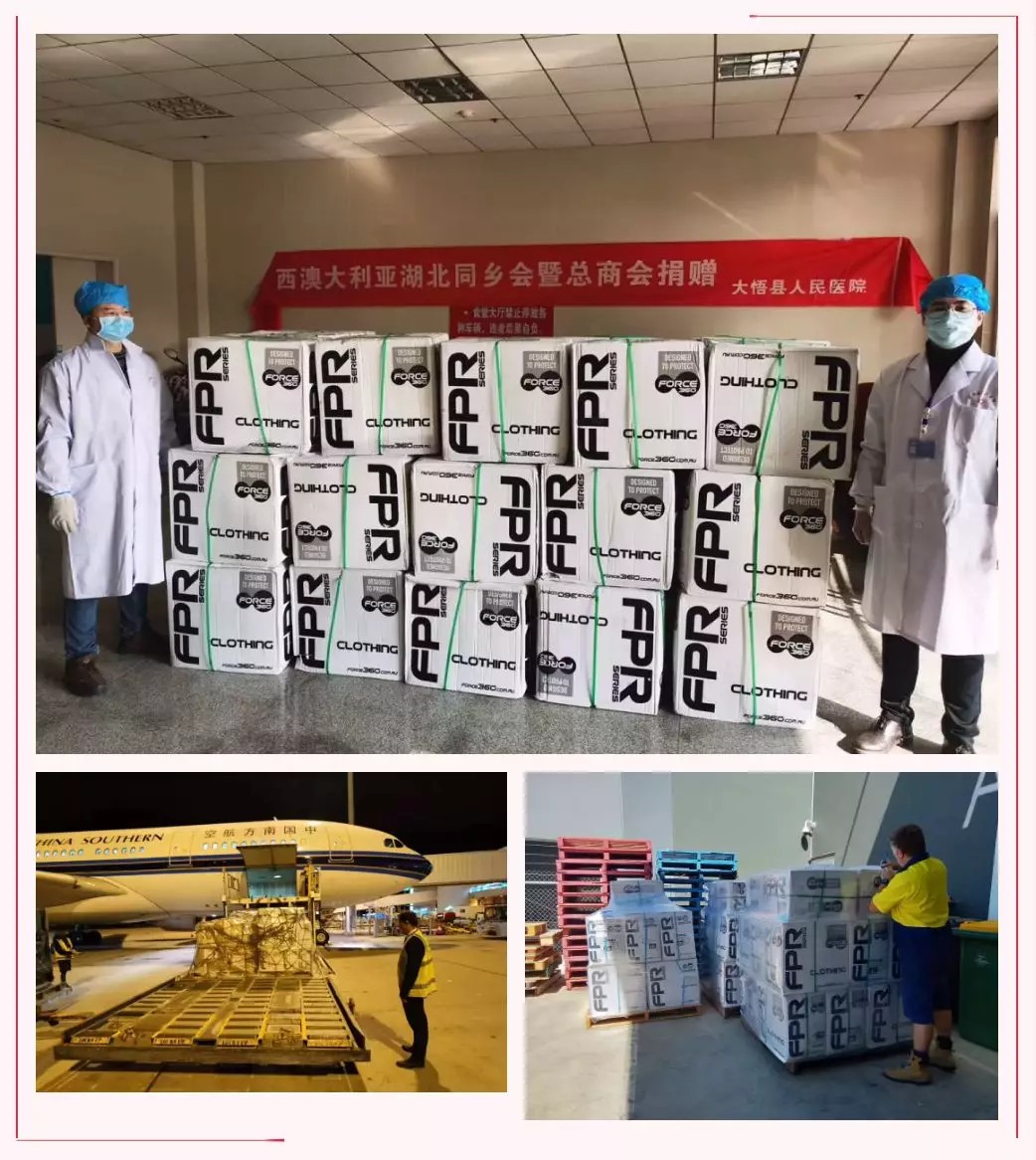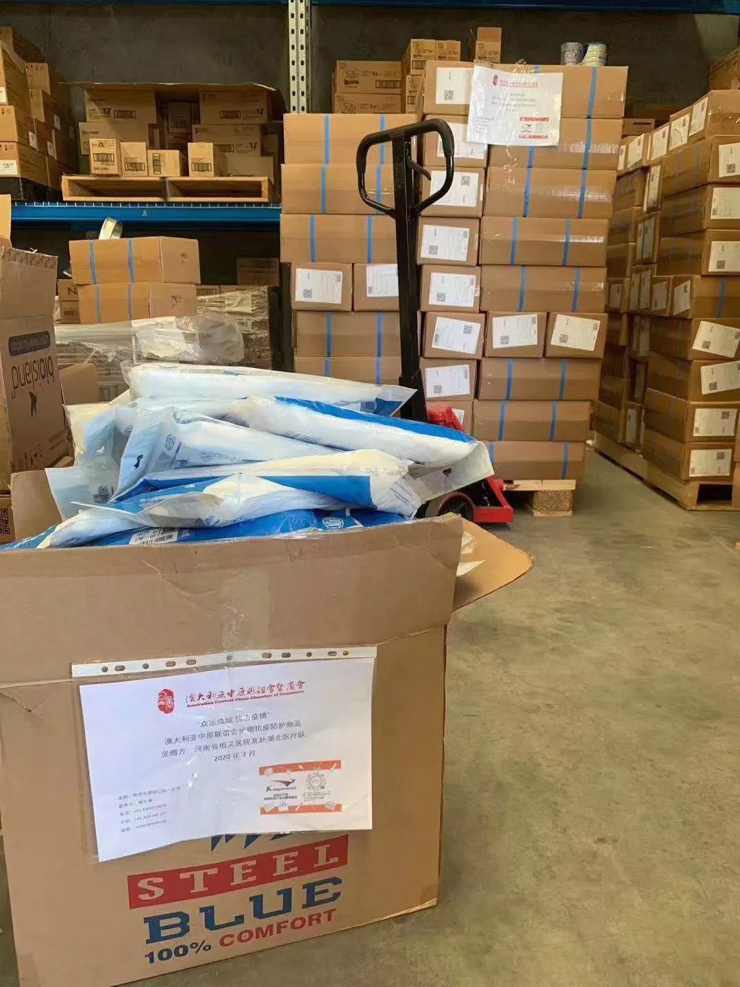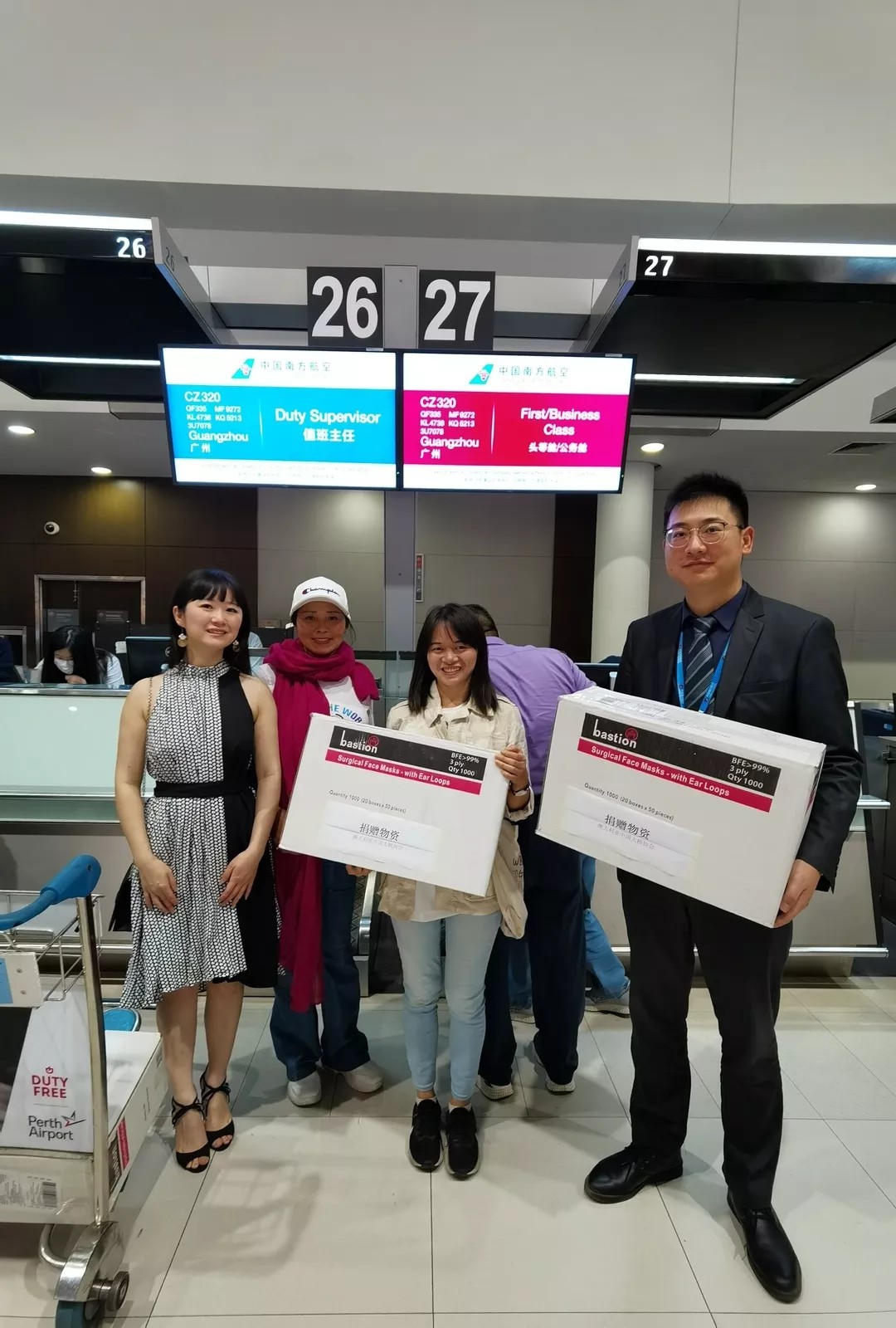 同时,西澳的蜂鸟物流、Tiger货运、中国南方航空公司等公司纷纷为捐赠物资提供免费运输服务,让物资与疫情赛跑,确保物资在第一时间送往疫情一线。