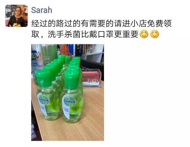 还有商家为刚返澳在家隔离的华人朋友免费送物品,让大家安心隔离。