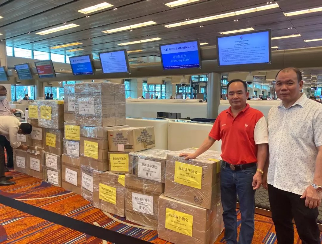 自2020年1月27日起,王泉成会长带领新加坡华源会组织捐赠的多批物资已送达,包含: 口罩50500个(14000个医用KF94口罩,14000个N95口罩,22000个医用一次性口罩,980个R95口罩),医用手套40900个,防护服2650件,一次性隔离衣1000件,护目镜144个,累计价值达 $139,827.64 新币。