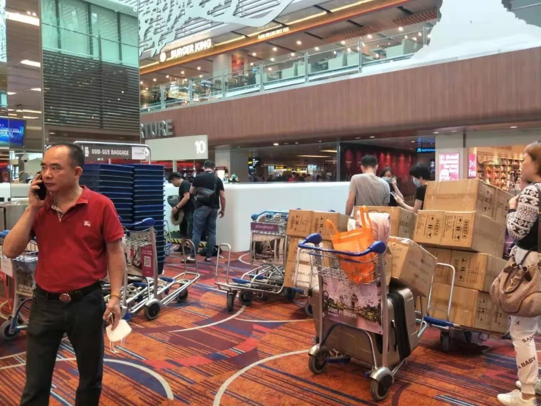 下午约3:30分 王会长在新加坡樟宜机场争分夺秒为物资办理托运