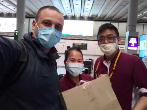 因为疫情原因,直飞中国的航空运输已经没有办法办理,几个乌克兰朋友在基辅乘坐土耳其飞机经伊斯坦布尔将物资送达香港机场。