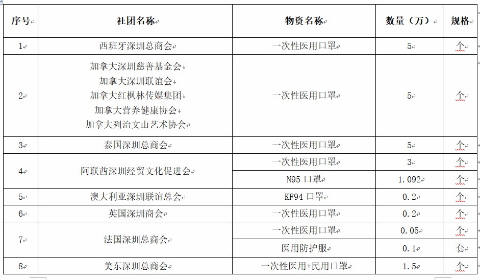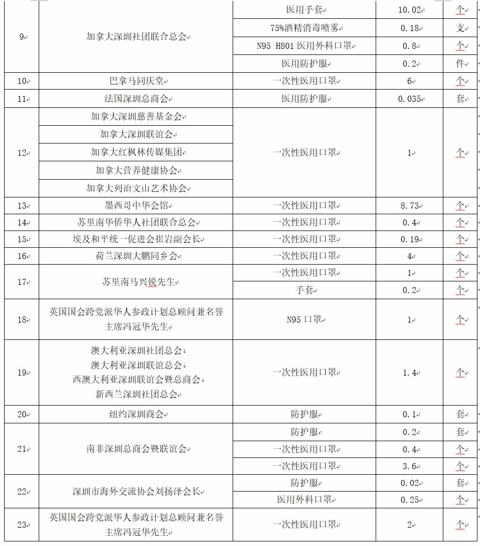 经过广泛发动,目前募集的防控物资还在不断增加,海外社团以及广大侨界人士情系家乡的爱心还在不断汇聚,他们充分发挥海外侨务资源优势,为解决深圳和其他城市防控物资紧缺问题作出了侨界应有的贡献。
