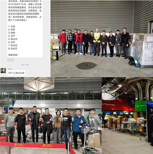 特别值得一提的是海航集团的谭向东副董事长、高建副总裁,为了协助我们把捐赠物资尽快运回国内,高度重视,靠前指挥,第一时间给予全面而具体的支持。旗下的首都航空公司市场部副总顾凌毅、货运中心高级经理田国伟协调陈肖艺、倪福元、李小戈、首航西安基地总监周瑞喜、海航速运境外管理部副总经理池梦莹以及郭宇萍等一批业务骨干加班加点,克服了时间紧张,物资量大,境外时差等诸多困难,创造了许多个“首航第一次”。蟠龙国际集团、中远海运航空公司则为这场“空中接力”提供了高端快捷的航空物流平台。而在第四批物资回运过程中,更是得到了温州市防疫指挥部的鼎力相助,帮助我们把西班牙巴塞罗那收集点上的捐赠物资,从布鲁塞尔转道回国。