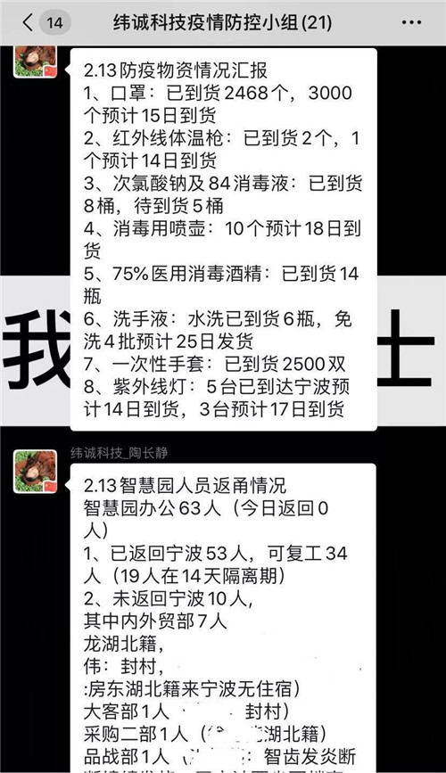 (纬诚科技疫情防控工作组成员介绍公司防疫物资准备情况)