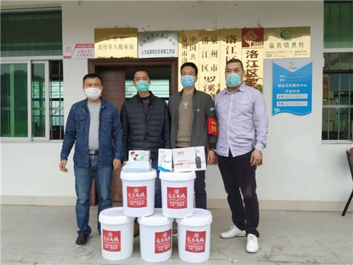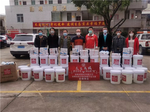 2月15日,泉州市侨界青年联合会全体会员凝心聚力,聚沙成塔,集体捐资捐物,出人出力,将5650公斤的84消毒水,50支红外额温枪,80部对讲机,15000个口罩,送货上门给洛江区、永春县、德化县等地22个村(社区),支持一线驻村(社区)干部、党员、志愿者开展疫情防控工作,展现众志成城,同心抗“疫”的侨青大爱。