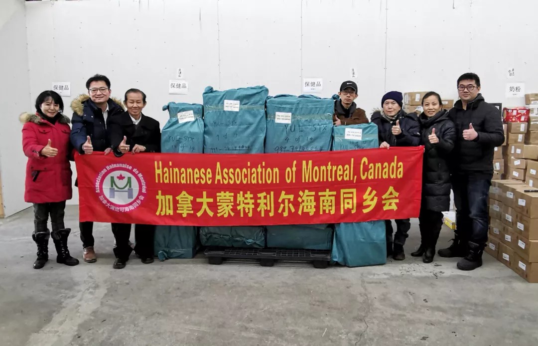加拿大蒙特利尔海南同乡会乡亲与捐赠的医疗物资
