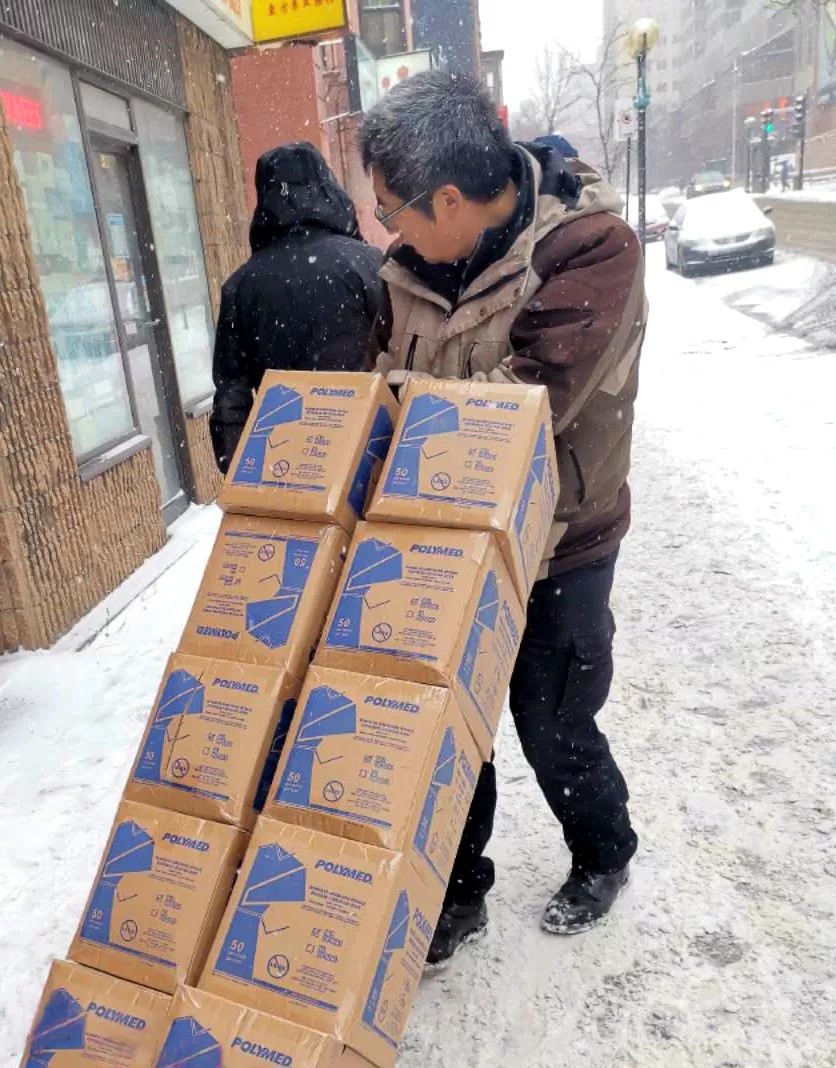 加拿大蒙特利尔海南乡亲冒着风雪严寒争分夺秒运送物资