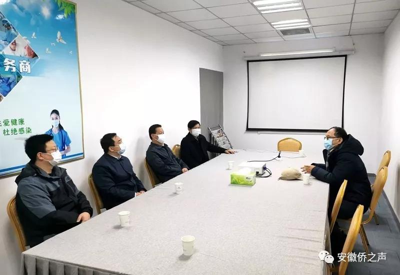 为进一步贯彻落实中央、省委部署和省委办公厅、省政府办公厅《关于加强疫情科学防控有序做好企业复工复产工作统筹推进经济社会发展各项任务的意见》等要求,2020年2月17日下午,安徽省侨联党组书记李世蕴,党组成员、驻会副主席兼秘书长杨冰赴侨资企业合肥高贝斯医疗卫生用品有限公司(合肥高贝斯无纺布制品有限公司)调研疫情防控和复工复产工作。省侨联有关部室、省侨商联合会秘书处负责人参加调研。