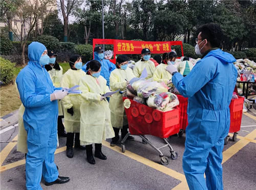 2月5日清晨5:00,76吨、8472份分装好的新鲜蔬菜,陆续运抵武汉4个世茂社区,免费发放给正在经历“菜荒”的业主。从采摘、运输、分装到发放,世茂服务人用连续72小时的不眠不休,告诉正在疫区坚守的世茂业主们:生活还要继续,总有我们在身后。