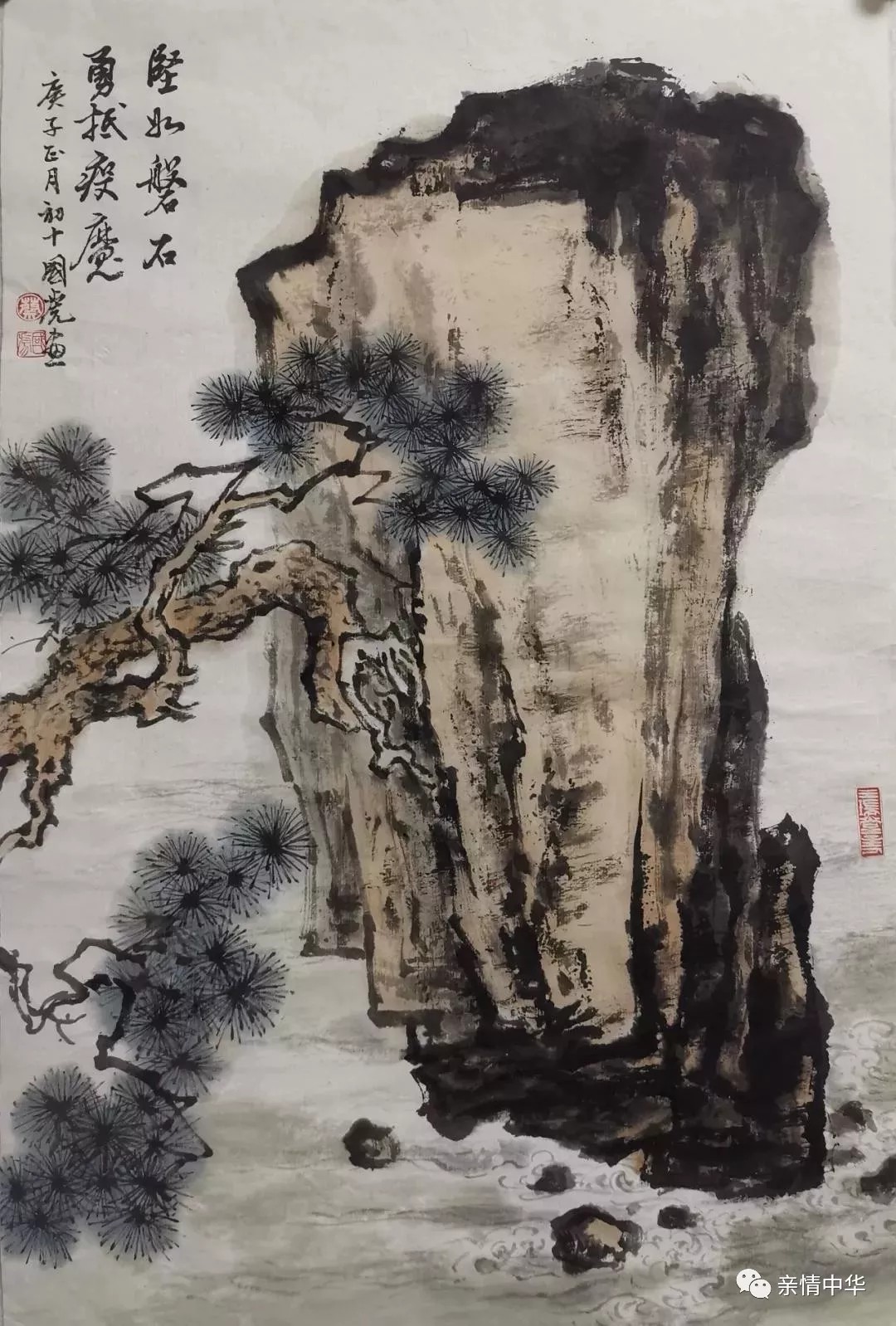 蔡国虎 中国画 《坚如磐石,勇抵疫魔》