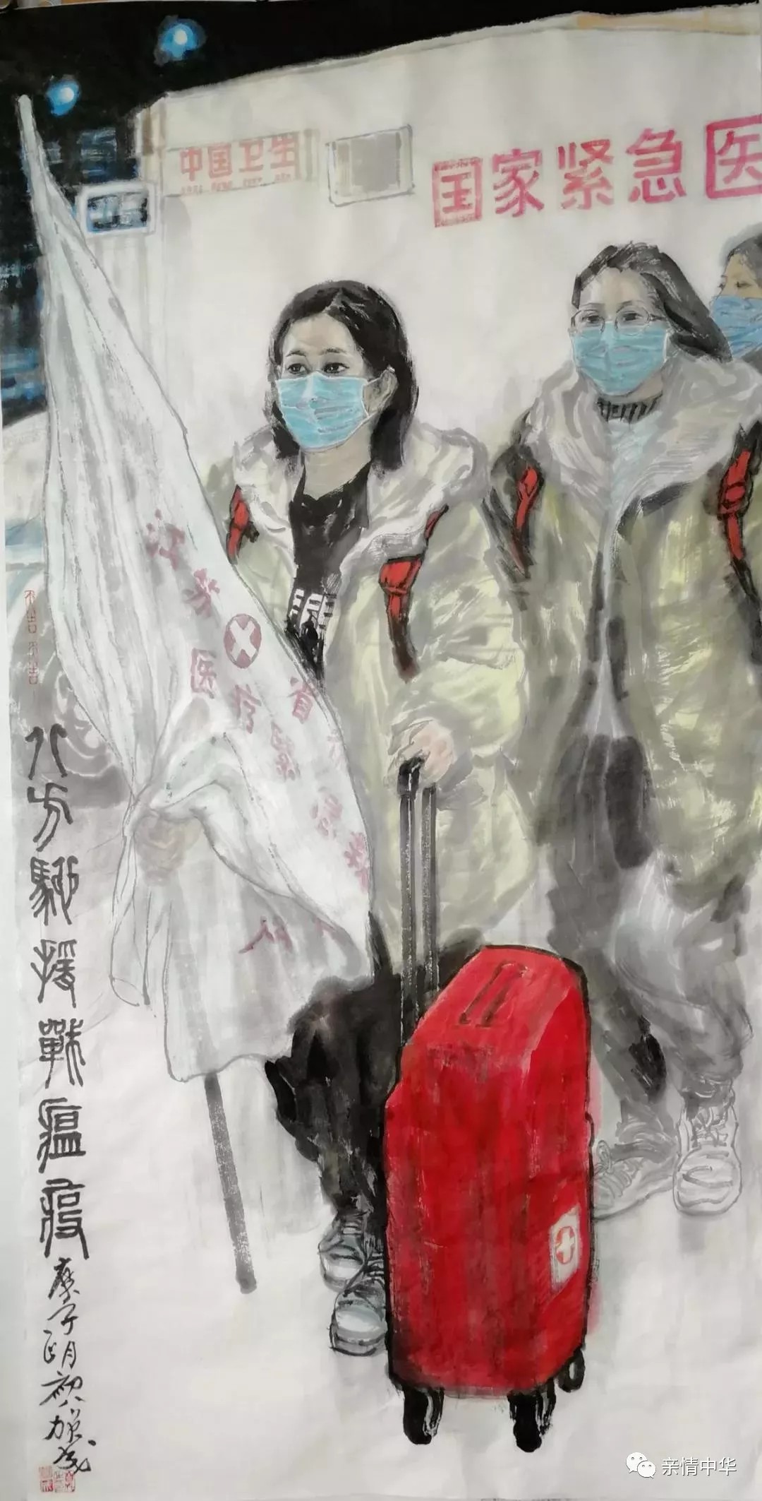 艺术传递心愿,翰墨呈现爱心。为展现江苏侨界书画家的使命与担当,彰显书画艺术的力量与温度,积极发挥侨界文化艺术在讴歌战“疫”典型、赞颂侨胞贡献和激励斗志、凝聚力量中的重要作用,省侨联向全省侨界书画家发出了“亲情中华·同心战疫”主题书画作品征集启示,得到了大家的积极响应和大力支持。仅仅一两天时间,就收到了近百幅书画作品,每一件作品都满怀着作者的真情实感。侨界书画家们用手中的笔墨书写新时代、描绘正能量,大力讴歌了广大医护工作者作为最美“逆行者”不畏生死、不计报酬的崇高品质,生动展现了广大人民群众在中国共产党的领导下万众一心、众志成城打赢疫情防控阻击战的坚强决心。摘录几幅,供分享。