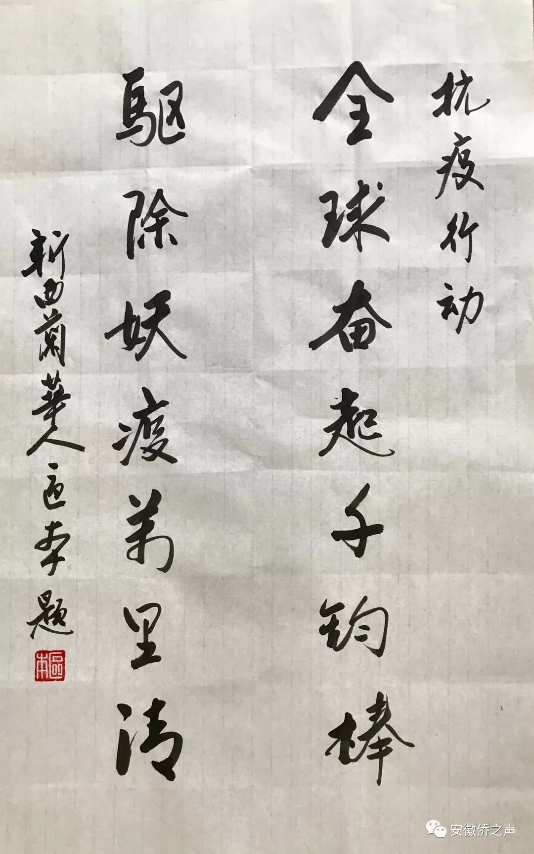 病毒无情,人间有爱。当前,中华民族团结一心、海内外中华儿女众志成城,汇聚成共同抗击疫情的磅礴伟力。按照中国侨联有关部署要求,安徽省侨联举办《“亲情中华 同心战疫”一一安徽省侨界网上书画摄影作品展》,通过侨界书画、摄影作品,为抗击疫情鼓劲加油,展示海内外侨界爱国爱乡的情怀和战胜疫情的坚定信心。