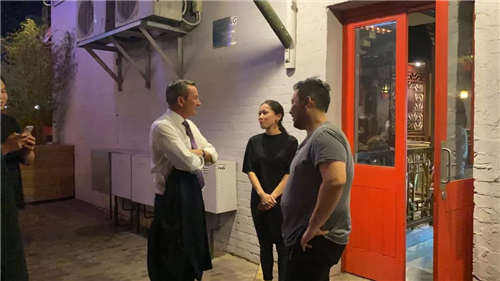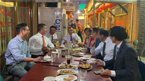 州长在中华巷里的李辉记饭店室外露天用餐,