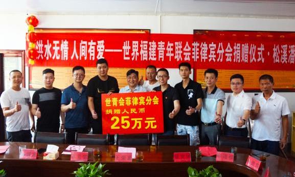 据松溪县侨联主席周志强介绍,王荣忠会长、林福生副监事长是石狮籍菲律宾华人,长期号召菲律宾青年华人要身系祖(籍)国,关注福建的发展,不分地域做慈善事业。