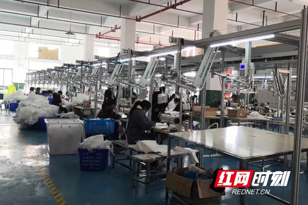 邵东熟练的产业工人为公司顺利投产提供了人力保障。短时间内100多名工人迅速到位,投入紧张的生产。仅仅4天后,第一批医用防护服试产成功,日产量达到1000套。