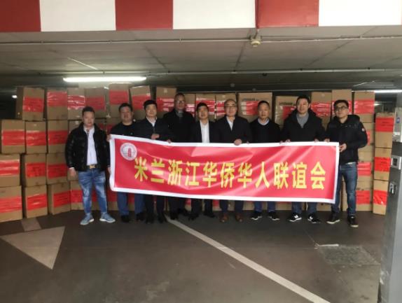 图为米兰浙江华侨华人联谊会捐赠物资