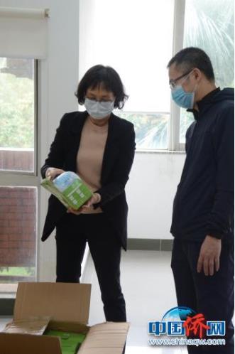 广东省侨心慈善基金会理事长杨昀清点受赠物资 受访者提供 摄