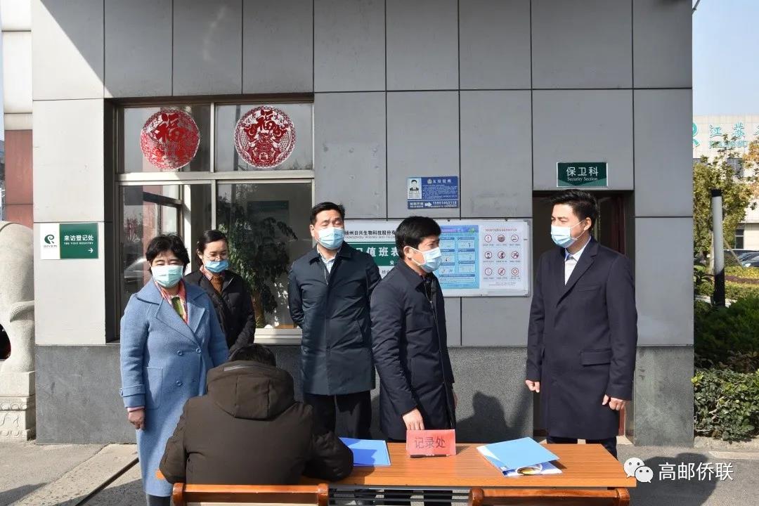 2月22日上午,高邮市侨联主席居锦陪同市委常委、政府党组成员、统战部部长杨文喜走访侨企,调研疫情防控和复工复产情况。“企业的复工率多少?”“疫情防控物资够不够?”“有外地人来上班吗?”……杨文喜一行先后走访了金飞达电动工具有限公司、高邮市卫星卷烟材料有限公司、扬州日兴生物科技股份有限公司。每到一处,他都认真倾听企业家心声,了解企业复工复产遇到的困难和问题。他指出,当前疫情防控仍然是重中之重,要坚持防控和复工复产两手抓、两手硬。复工企业要增强责任意识和风险意识,做好对返岗工作人员的检查登记、测量体温和工厂车间、食堂、卫生间的消毒、杀毒工作,切实把各项疫情防控措施落实落细。他希望企业能坚定发展信心,并表示市委市政府在做好疫情防控工作的前提下,会积极为企业发展排忧解难,支持企业安全有序复产,与企业共克时艰,共渡难关,把疫情影响降到最低。