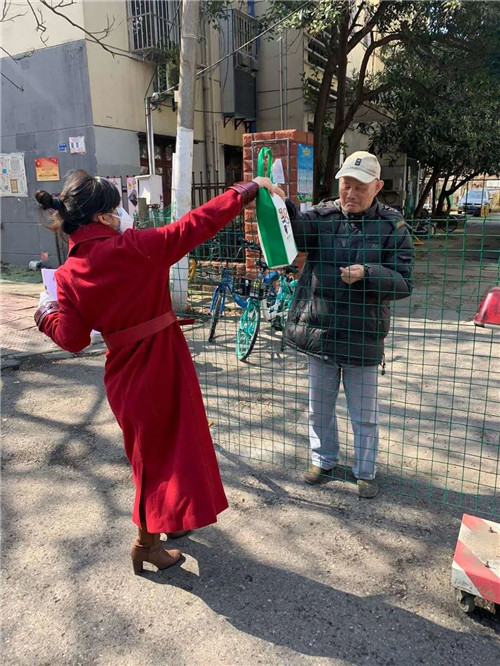 印尼归侨、79岁的庄友怀老人,家住鼓楼区的一个小区,见到来送口罩李敏、马丽娜,隔着铁栅栏说:“我没有口罩啊,都不敢出门,听说侨联来送口罩,我激动啊!”因为小区封闭着,李敏只好隔着铁栅栏把装有口罩、口腔护理液、洗手液、中药香囊的拎袋递过去。这张照片,被大家称之为“最美背影!”