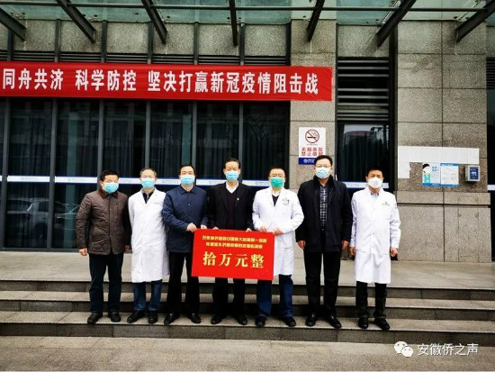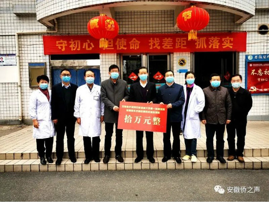 2月27日下午,安徽省侨联党组书记李世蕴,党组成员、副主席兼秘书长杨冰及机关有关部室负责同志赴中国科学技术大学附属第一医院和安徽医科大学第一附院医院,各转赠海外侨胞爱心捐款10万元,支持医院疫情防控工作,并请医院领导转达省侨联对援鄂医疗队全体医护人员“逆行”之举的慰问和海外侨胞的敬意。