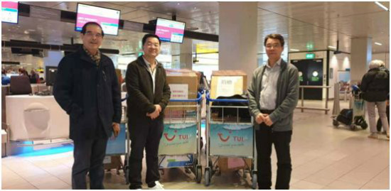 旅荷大鹏同乡会的华侨华人们将口罩运送到机场。