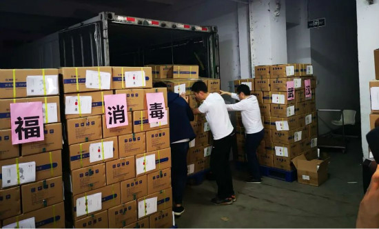 市侨媛协会副会长郭秀玲旗下企业深圳安多福消毒高科技集团公司,为确保抗疫之需,早在腊月二十五就已加班加点赶制消毒液。1月25日(大年初一),在多方协调帮助下,安多福公司向武汉市红十字会捐赠价值57.4 万元的500箱共1.2万瓶PVP-I专业医用消毒液,该批物资由中国邮政的调配车辆装箱,连夜从深圳驰援武汉。1月27日(大年初三)起,安多福公司提前开工,昼夜奋战,全力投入医用消毒液生产。